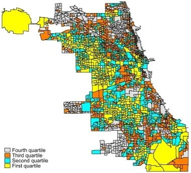 Figure 1: Voter turnout by quartiles, Chicago 2023 (n=1,291), General Mayoral Elections, by Electoral Precincts. 2023 General Election